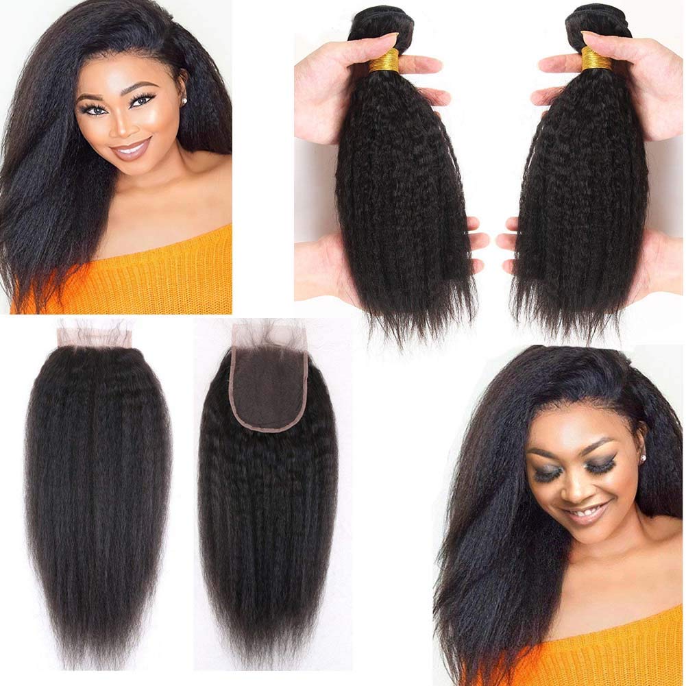2020 Brazilian Kinky Straight Hair With Closure Afro Kinky
