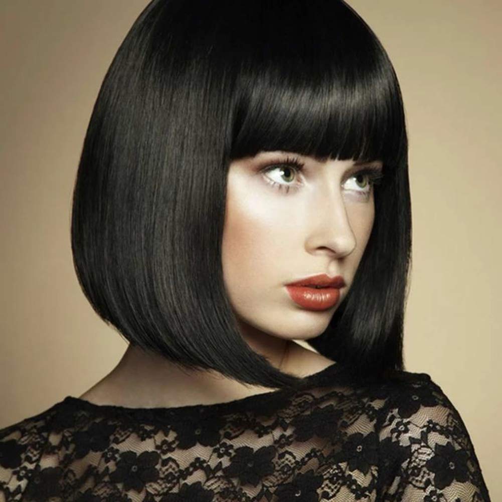 Short Full Fringe Straight Bob Human Hair Wig Jet Black 01 76 67