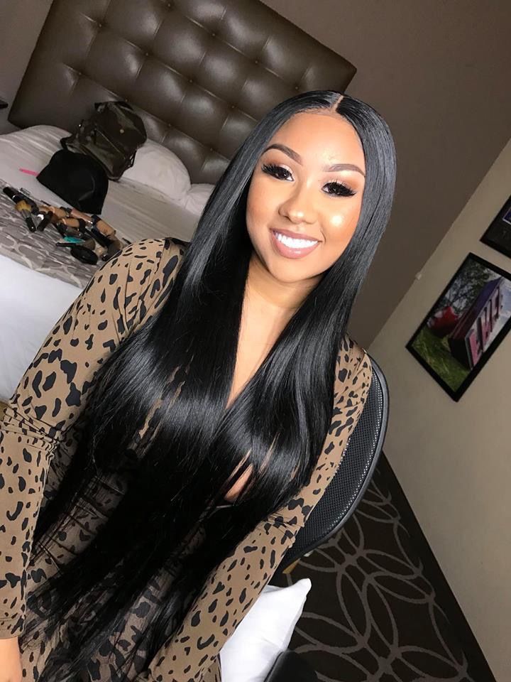 Lex On Twitter Middle Part W Bone Straight Jet Black Hair
