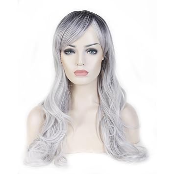 Wiwigs Ombre 2 Tones Lace Front Wig Curly Dark Roots Long Silver