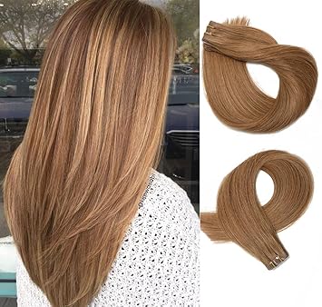 Laavoo 14 Inch Ombre Extensions Tape In Hair Color Light Brown To
