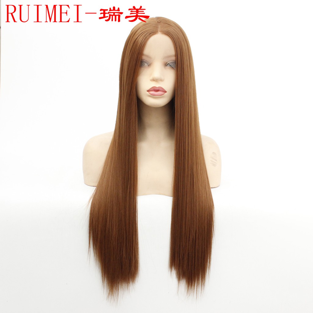Brown Blonde Long Straight Hair Glueless Wig Synthetic Lace Front
