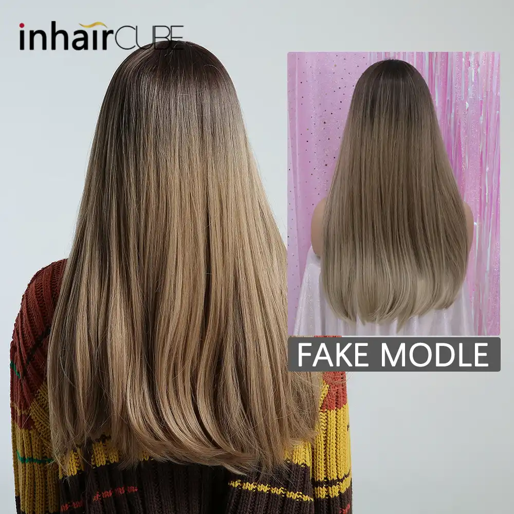 Fashion Ombre Straight Dark Roots Brown Lace Front Wig
