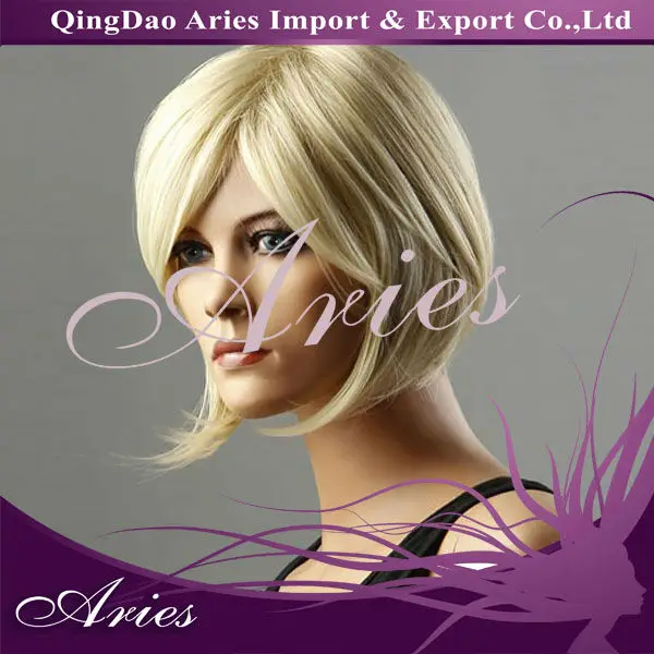 Quality Light Blonde Side Swept Bangs Synthetic Hair Wigs Short