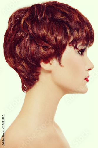 Beautiful Female Model With Short Hair Style In Casual Dress