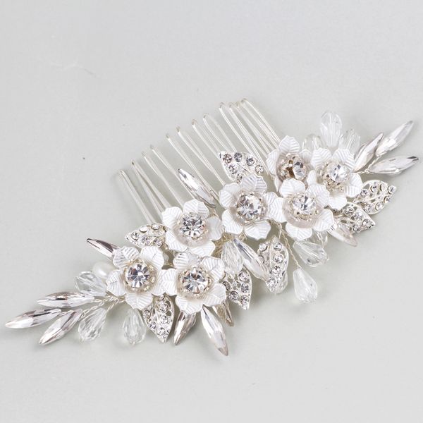 Silver Bridal Hair Comb Hairpins Pearl Crystal Flowers Hair Comb