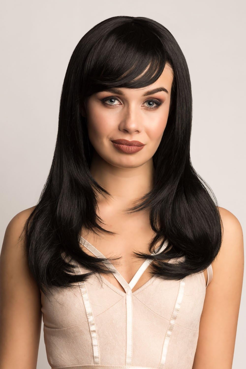 Long Black Wig With Short Straight Fringe Maxine Long Wigs