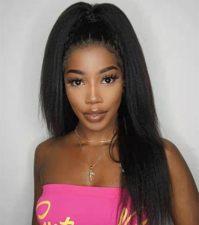 Remy Human Hair Lace Front Wig With Ponytail Style Brazilian Hair